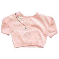 Pretty in pink. Pointelle cardigan with flower applique detail and little flower shaped buttons.