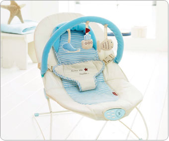 Lovely soft lullaby vibrating and musical bouncing cradle by Cosatto. 3 level on-off vibration function. Suitable from the moment your little one arrives until they can sit up all by themselves. 3 Lullaby, panpipes, a classical tune or birdsong, with 3 volume levels. Cute seaside toys, which little one can take off and play with (bar can be removed too.) Totally luxurious soft touch fabrics gentle against precious new skin.